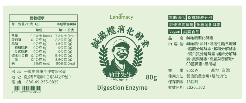 鹹橄欖消化酵素 80g